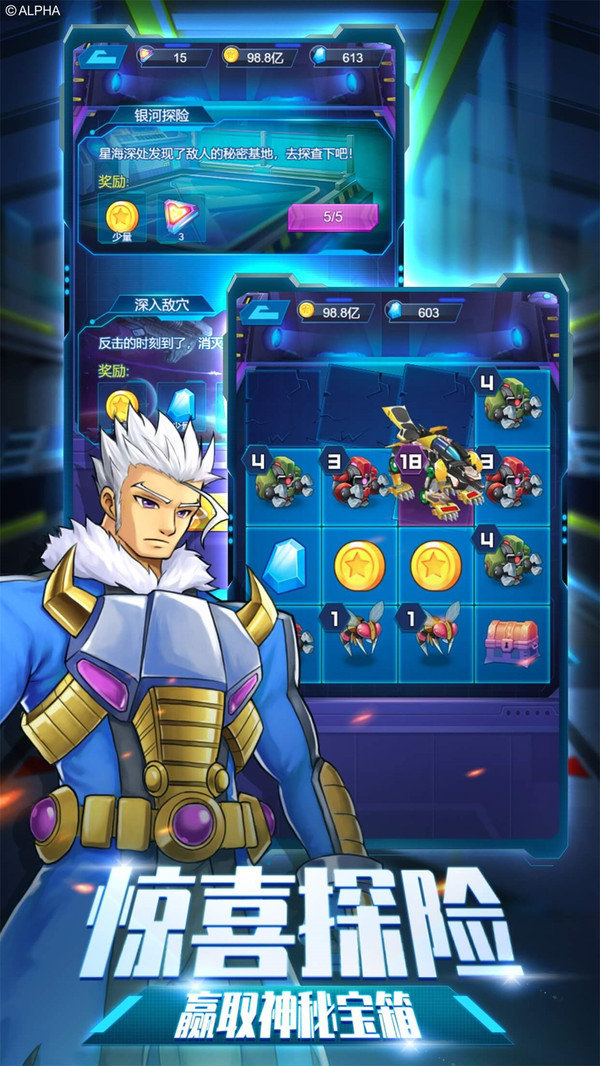2、排除繁琐操作,只需合成不停,便可升级出高级机甲,解锁新技能,提升你的战力。