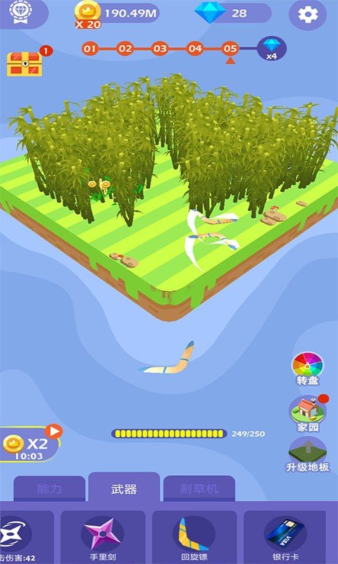 2、这是一款很有意思的割草游戏,玩家可以体验到十分舒爽的除草玩法。
