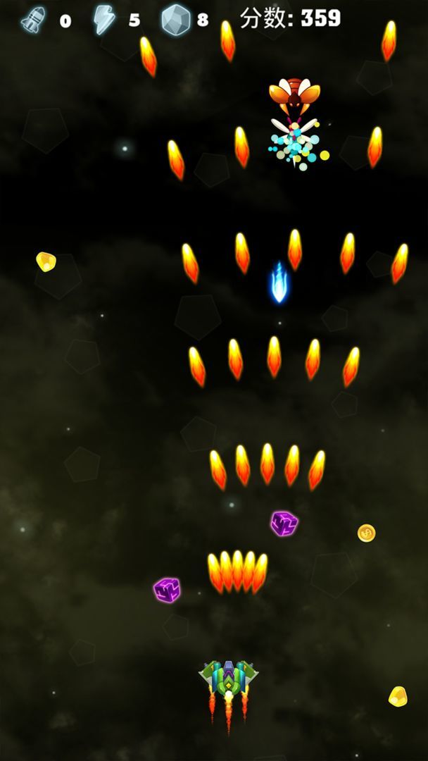 4、在太空之中跟邪恶的虫族进行作战,自由发射你的导弹击坠各种各样的小蜜蜂。