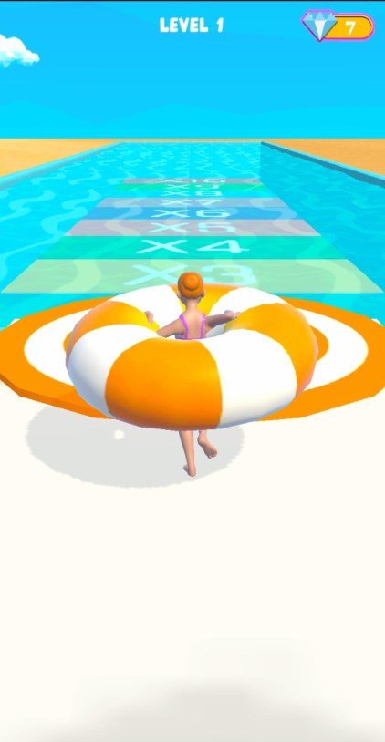 3、大的游泳圈可以在游戏的最后获得更多的钻石加成,但同时也会为女孩带来危险。