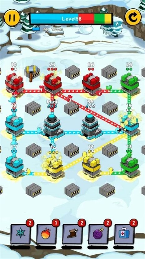 1、敌人会越强,所以塔的位置和搭配很重要,有时候你也可以选择以退为进。