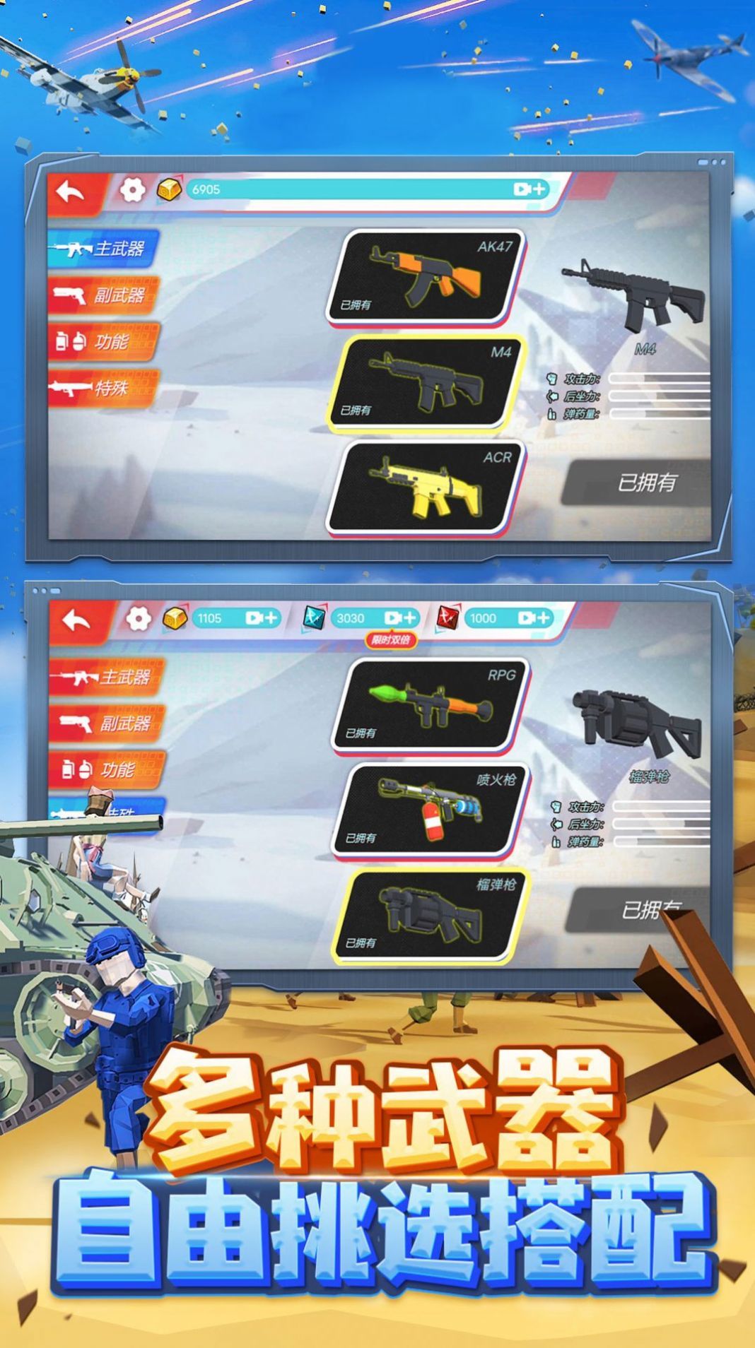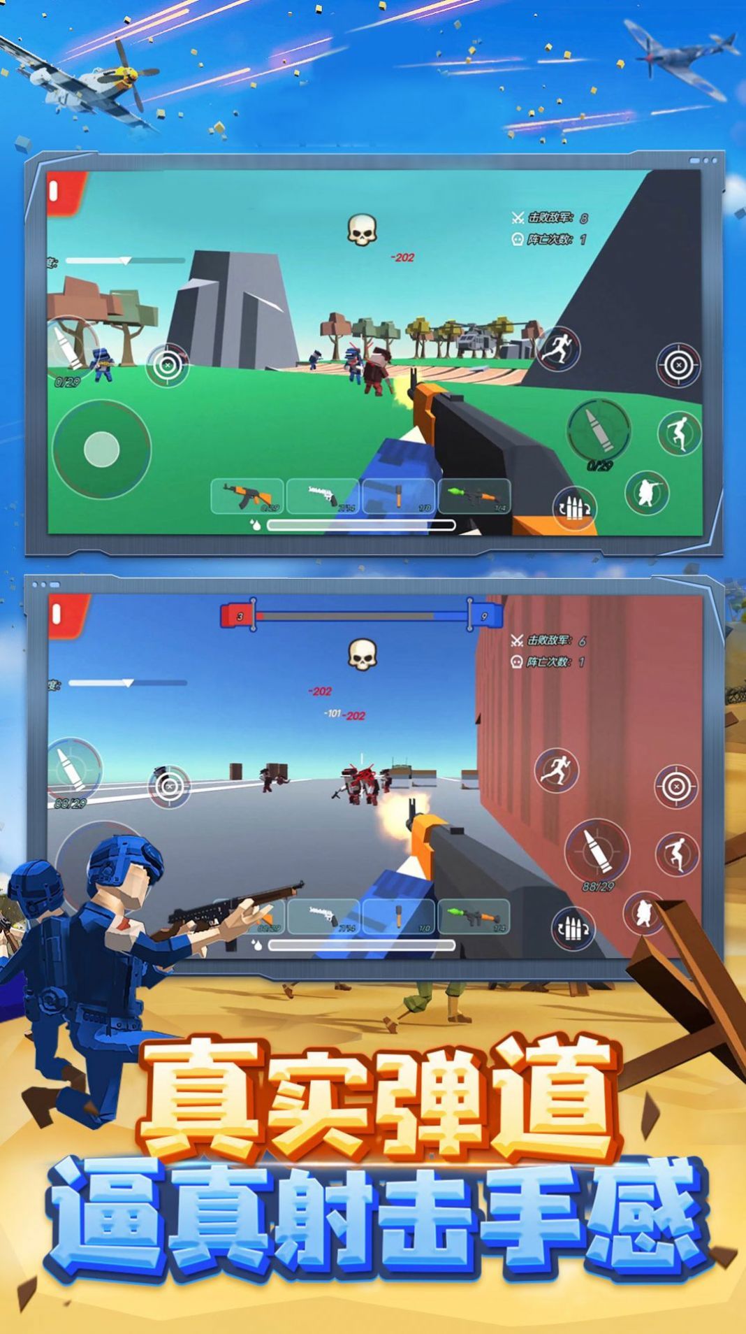 3、满地图宝箱获取解锁顶级枪支,瞄准射击敌人,胜利活到最后。
