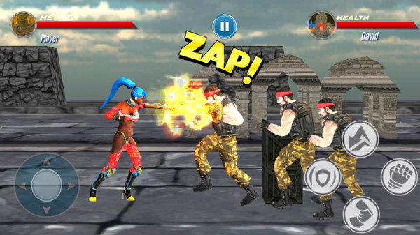2、每次击打都会有生动的音效,一次有多个敌人需要挑战,你可以跳跃,踢和猛击敌人。