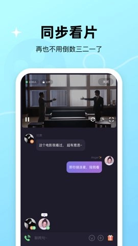 3、另外,微光交友a能让你与他人一同观赏电影、聆听歌曲,共享欢乐。