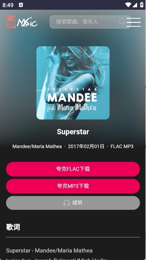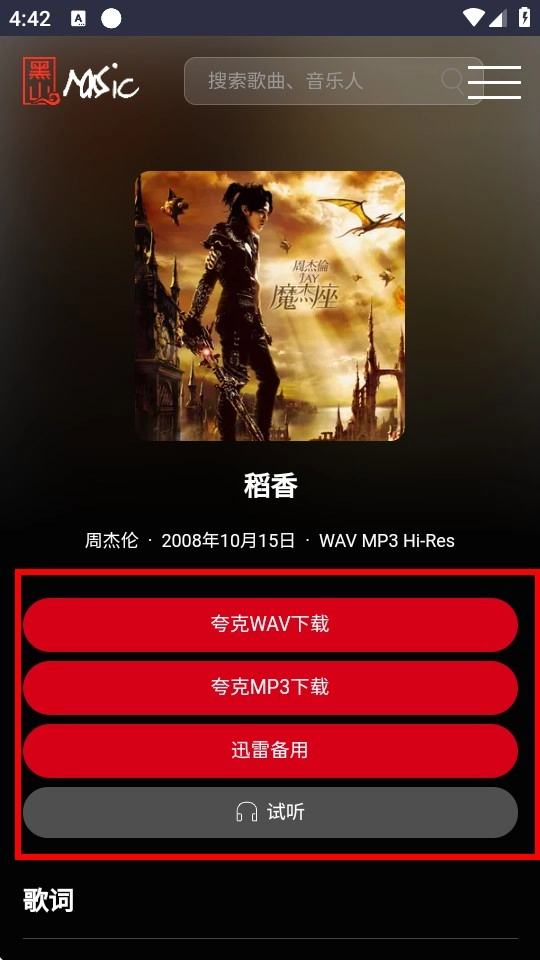 2、只需输入关键词,就能找到心仪的音乐资源。