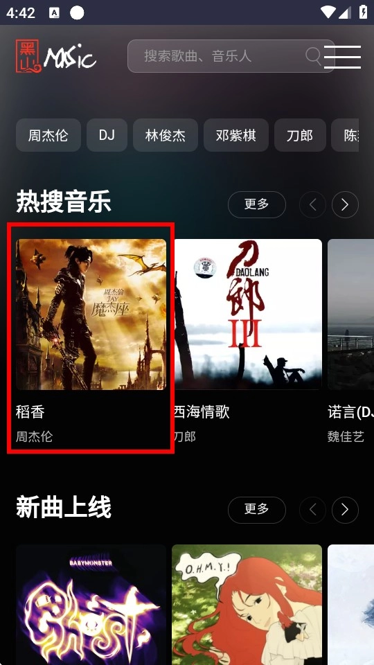 2. 打开首页,即可浏览丰富多样的音乐资源,这些资源按照歌手以及歌曲类型进行分类呈现。