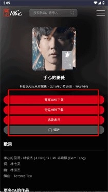 2、通过点击或搜索心仪的歌曲,进入其详情页面。