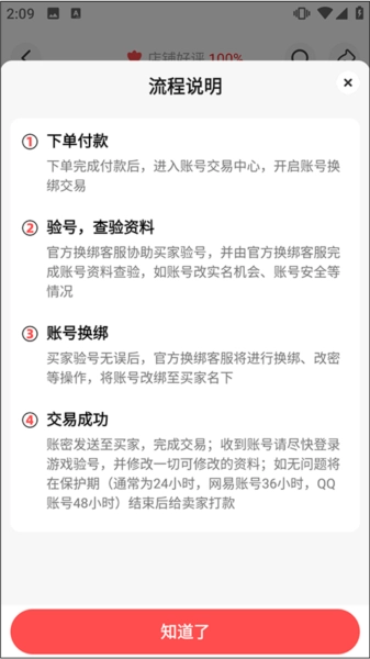 5、此外,在购买账号之前,不妨查看一下其中的流程说明。