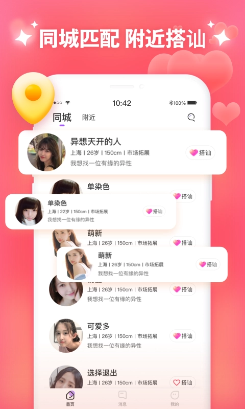 同城聊天交友约会仅需轻轻一点,让恋爱交友变得超简单!