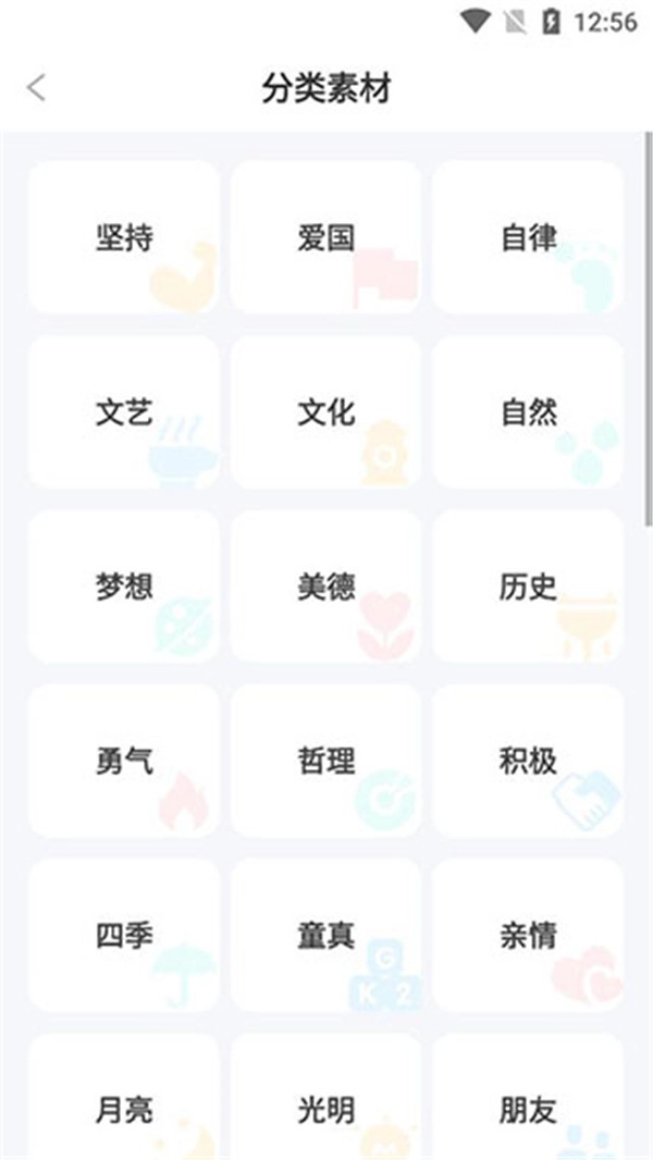 4、在素材分类,查看各种词语分类,方便分类检索。