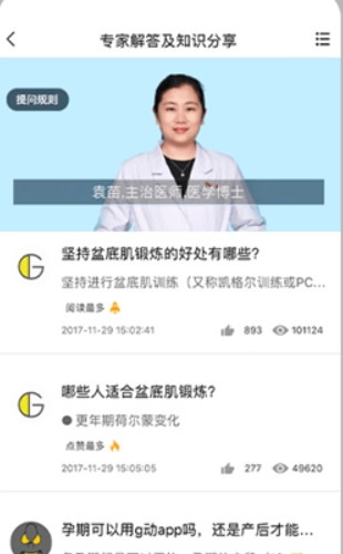 1、G动给出科学的训练方式,助力用户切实预防与治疗盆底肌相关病症。