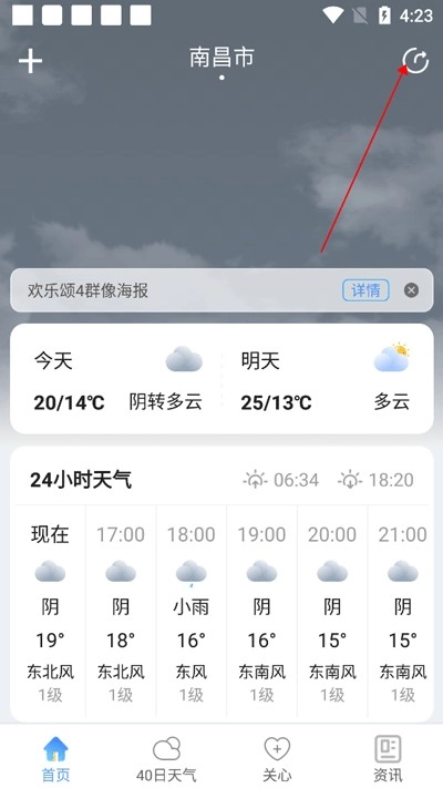 3、24小时天气:一天内逐时天气状况直观展示,提前知道当天气候变化。