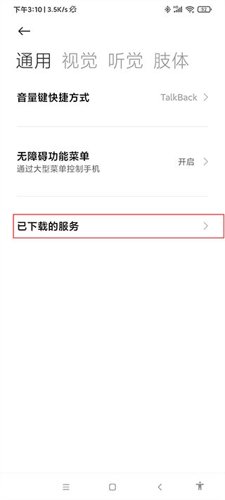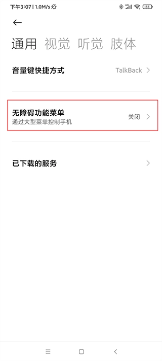 2、点击“辅助功能权限”,在其中找到“无障碍功能菜单”,该功能默认处于关闭状态,需手动开启。