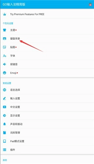 1、我们先进入输入法设置界面,选择键盘背景;