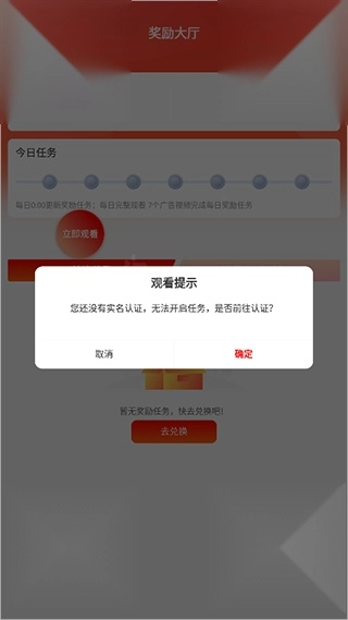 3、任务相关:完成认证后,使用系统赠送的10券点在任务大厅兑换旅游任务①,接着点击上方的“去观看”,观看5个视频,完成任务后可获得0.4券点。