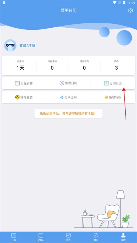 1、打开最美日历,进入主页登录,点击订阅日历;