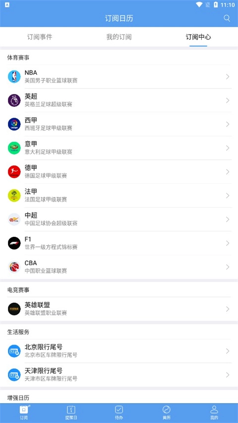 订阅:体育(西甲、英超、F1等)赛事订阅,北京限行订阅;