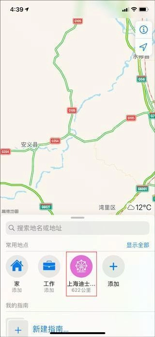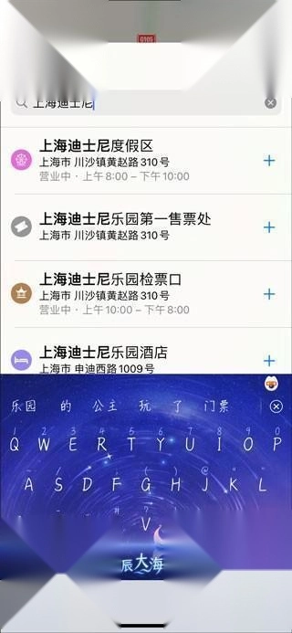 2、在搜索栏中查询想要定位的地名,如上海迪士尼;