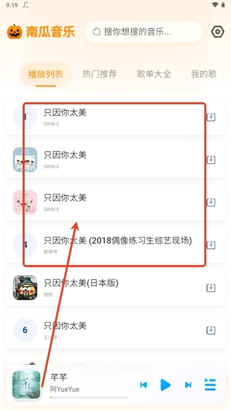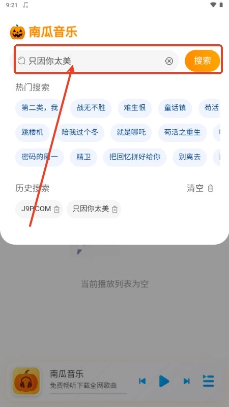 2、在这里搜索你想要搜的音乐;