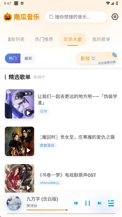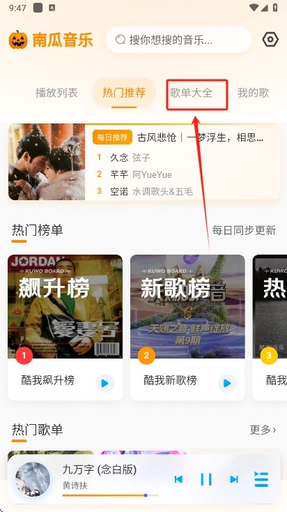 2、点击顶部的歌单大全还能够查看全部的歌单