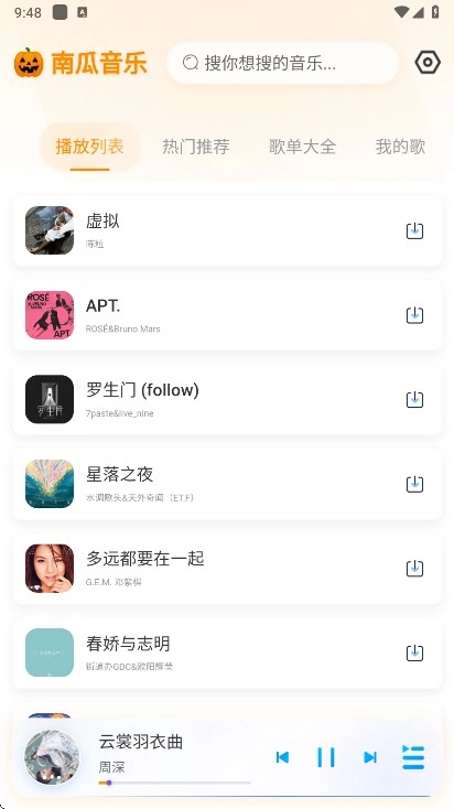 3、选择喜欢的音乐歌单就可以获得大量音乐了