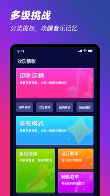 3、在猜歌页面,你能够体验边听边猜、真假歌迷、星歌模式以及流行歌单等板块。