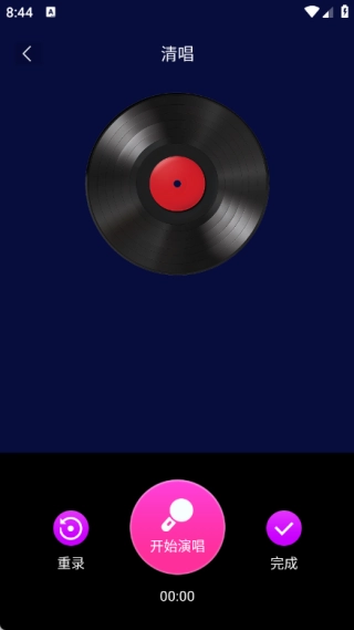 2、点击右上角的“清唱”,进入清唱页面,此时选择“开始演唱”,就能进行各类歌曲的清唱。