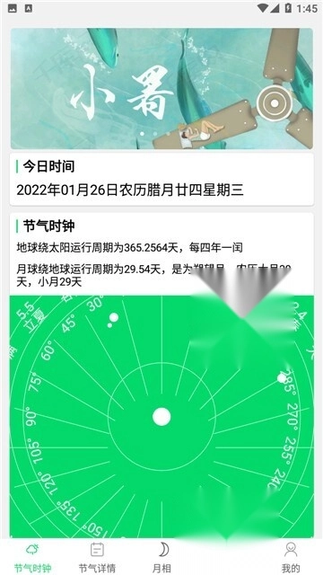节气日历是一款简单易用的日历软件,使用该软件的用户能够了解到24节气与太阳月亮之间的联系,增长自己的知识储备,多种功能其中,用户可以根据自己的需求进行使用,软件的运行很稳定,不会出现闪退以及卡顿的情况,体验感还是很不错的。