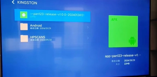 4、找到123云盘TV版安装包,点击即可成功安装