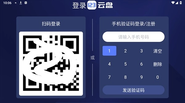 5、安装完成打开,支持手机端123云盘扫码登录