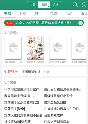 2、在书城中找到自己喜欢的小说点击,或者使用搜索找。