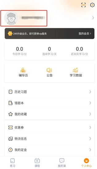 2、然后在个人中心的页面中可以查看到很多的信息,在这里我们点击左上角自己的【头像】;
