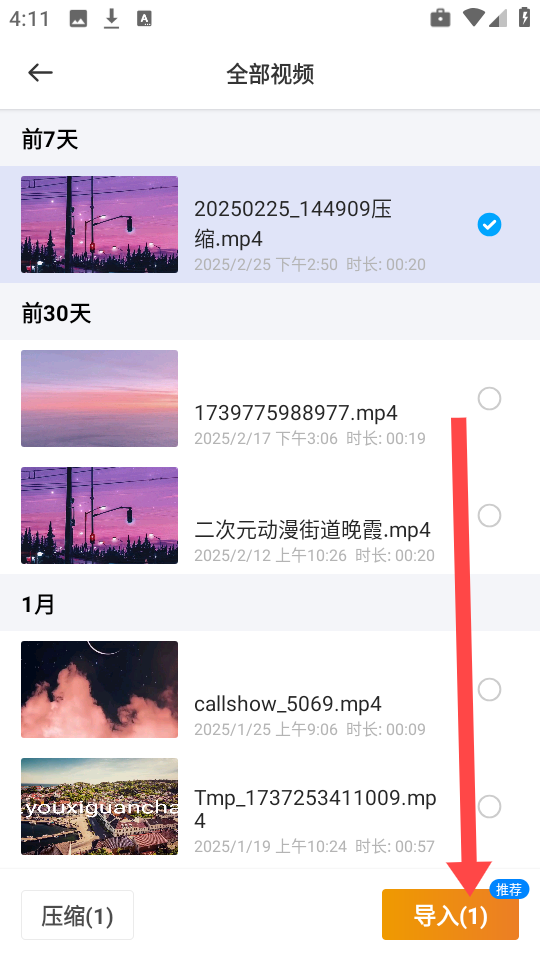 4、挑选任意一个有待处理的文件,接着点击页面右下角的“确认导入”按钮。