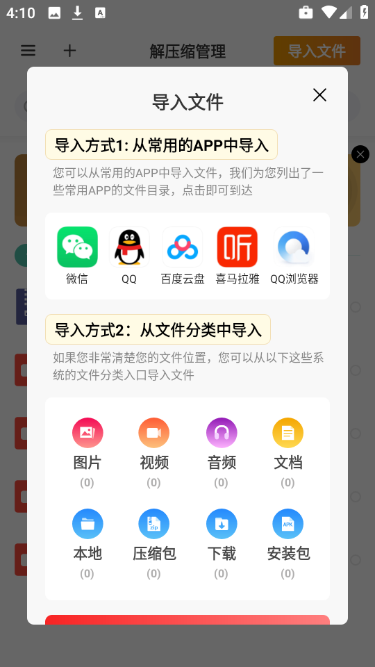 Zip解压缩管理工具在使用时,能兼容众多压缩格式,像Rar、Zip、7z、bz2、bzip2、tar、taz、gz、gzip、tgz、xz、txz等都不在话下。它可以轻松完成文件内容的导入,解压速度极快,既给用户带来了便捷的使用感受,又在一定程度上切实提高了办公效率。