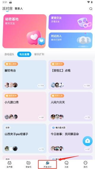 点击下方的开麦派对还可以查看很多“声音电台”