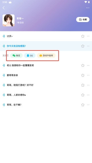 点击语音还能把它发送到微信、QQ,或者在游戏里使用。