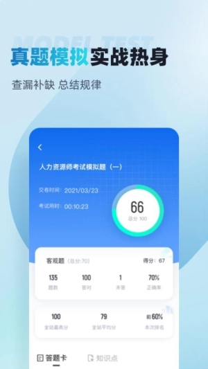 2、全真模拟试卷,应用提供真实考试场景的模拟,帮助用户检测自身学习进展,实现及时调整学习策略和计划。