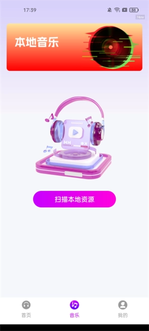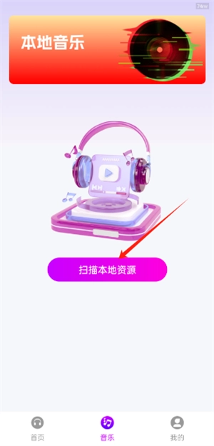 3、进入音乐板块后,点击“扫描本地音乐资源”选项,即可导入本地歌曲。