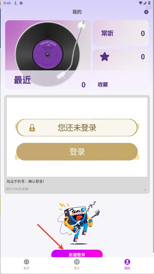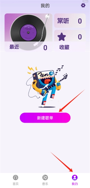 4、点击右下角的“我的”,再点击“新建歌单”,就能创建属于自己的音乐歌单啦