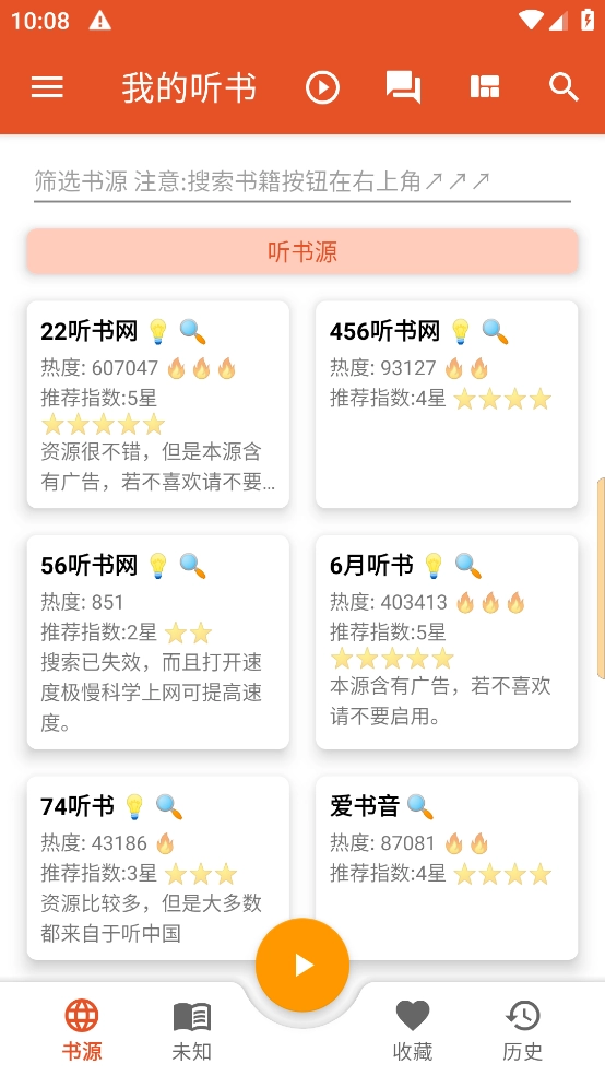 2、创新推出多源管理功能,允许用户自定义添加书源,大家能依据自身喜好拓宽收听边界,构建专属的个性化听书库。