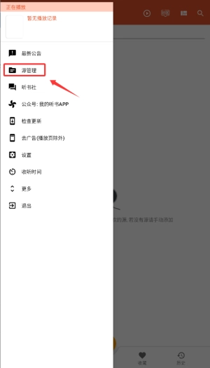 3、点击"添加书源"选项,输入有效资源地址即可扩展收听内容。