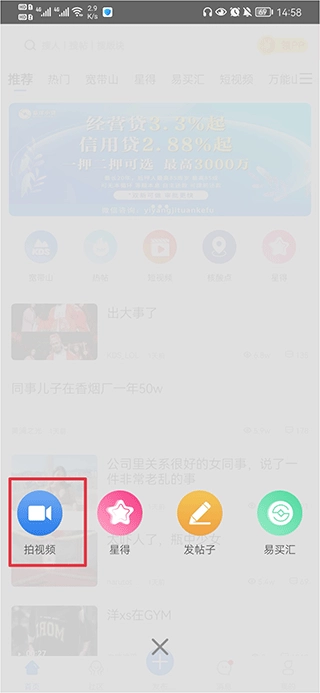 2、点击拍视频