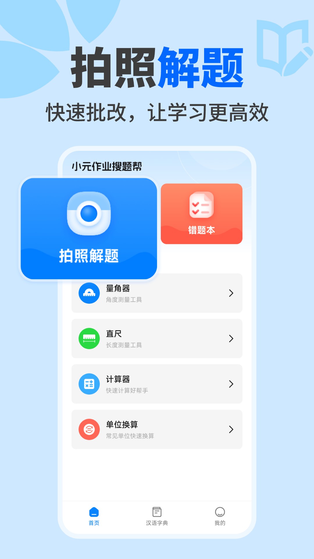 小元作业搜题帮是一款拍照搜题工具,用户可以通过相机快速拍照,解决作业中遇到的各类难题,同时还能获取多种有效解决方案,助力用户在知识的海洋里畅游,快来体验吧。