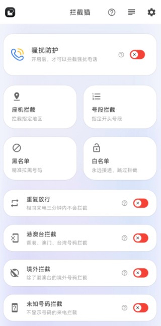 拦截猫2025版是一款专业的手机骚扰拦截工具,操作简单易用,支持灵活自定义设置,可精准实现短信与电话拦截功能,为用户提供轻松便捷的使用辅助,提升整体使用体验。该软件具备丰富的功能设计,能提供更优质的辅助服务,通过智能识别标记垃圾内容,以更专业的方式完成拦截任务。