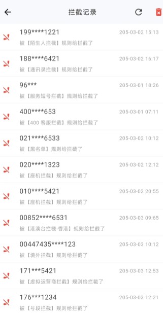 5、完成设置后,一旦有骚扰电话打进来,系统就会自动进行拦截,用户还能通过拦截记录查看具体情况。
