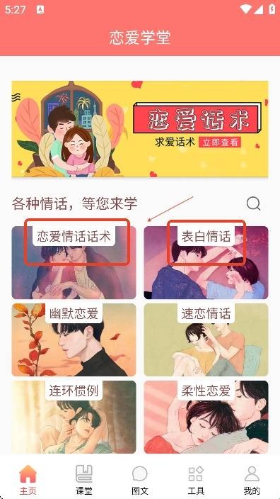 3、男生们也能借助课堂板块里的图文、视频和音频,更直观地学习恋爱技巧。