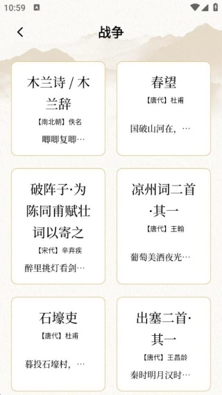3、关于战争的古诗词一目了然,学习的同时,是可以掌握到更多的内容。