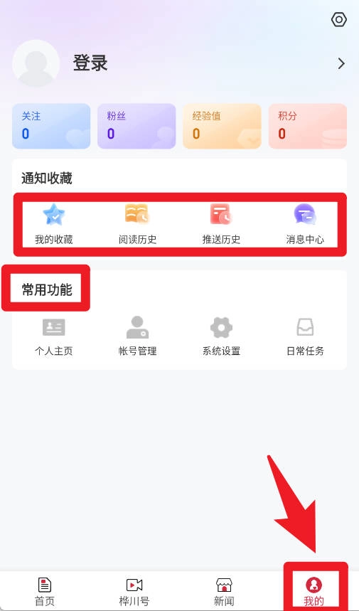 5、我的页面涵盖收藏、阅读历史、推送历史与消息中心功能,同时支持账号管理和系统设置,各项操作设计得更为贴心便捷。