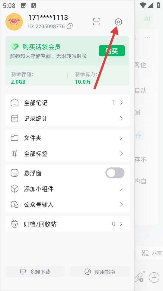 2、在个人界面中,点击右上角的设置图标,可进入设置页面。