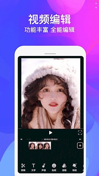 视频制作大师是一款简单好用的视频创作工具,覆盖从拍摄到后期剪辑的主要环节,操作界面简洁直观,能轻松处理拍摄内容或已有素材,还提供丰富多样的素材资源,像主题元素、动态贴纸等,助力视频增添多元风格,让用户在手机上就能便捷创作出富有创意的作品,尽情享受视频制作的独特乐趣。